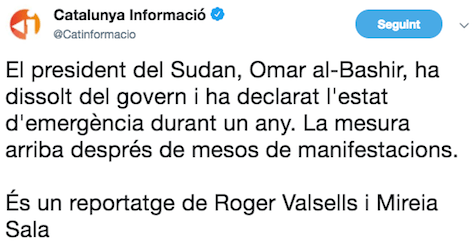 El president del Sudan dissol el govern i declara l’estat d’emergència